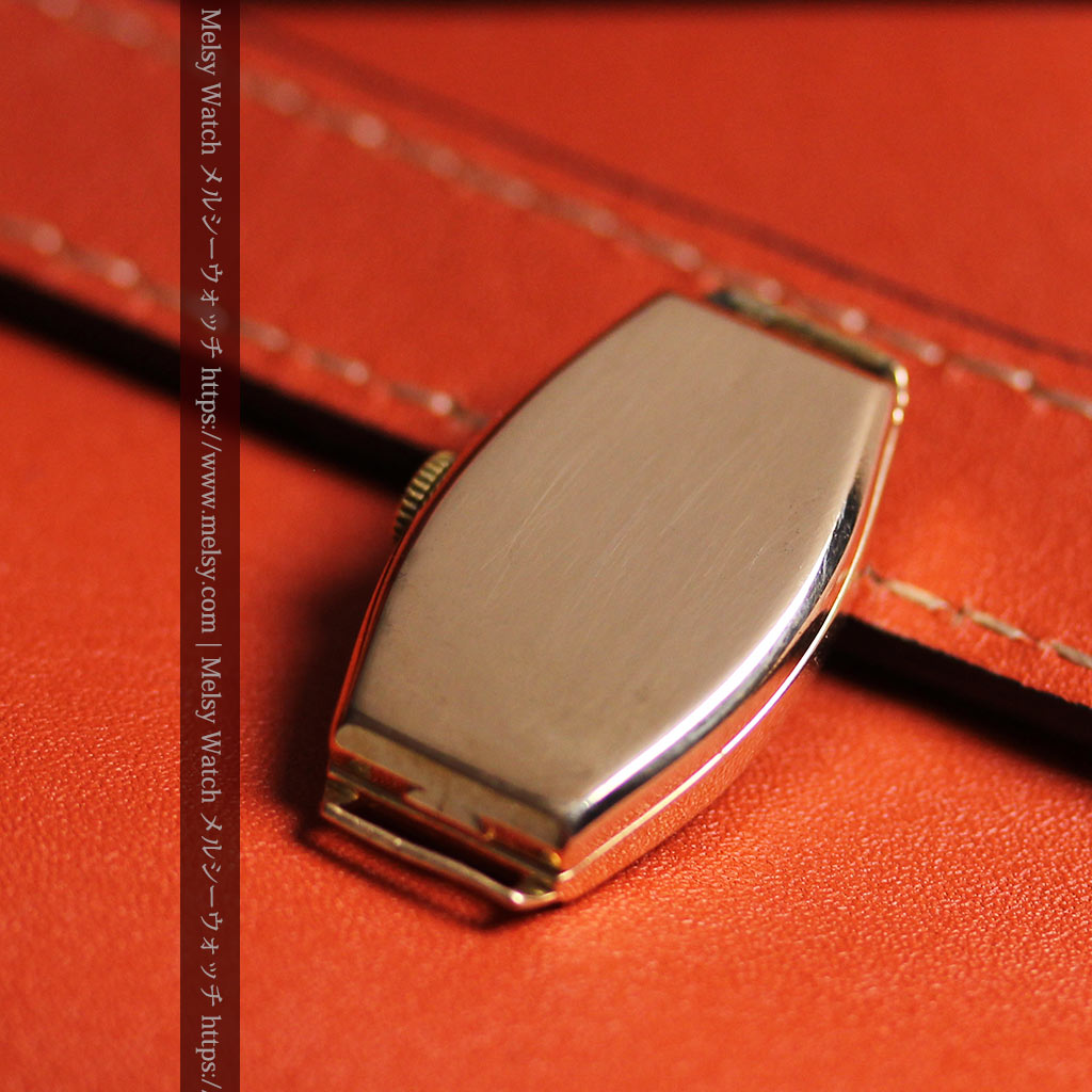 縦長の現在では樽型と呼ばれるものですが、両側がカーブをしている形で、中央に丸い黒い文字盤というデザイン。