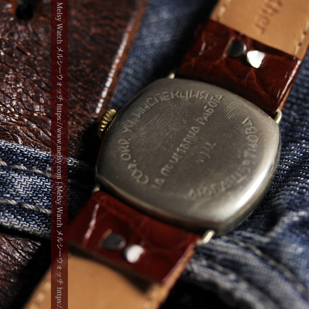 時計の裏蓋には、下記のようにロシア語で彫りが入っています。