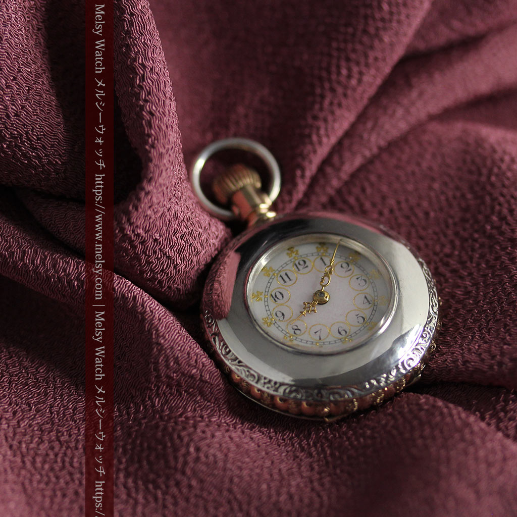 ケースの側面にも立体感のある装飾性があり、とても個性と愛嬌のある懐中時計です。